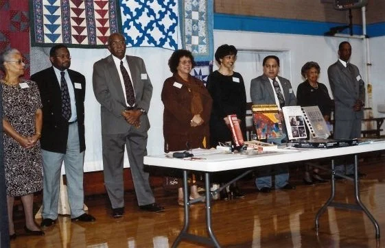 “Quilts,” our first exhibition running from October 6 to November 19, 2002, was composed of Portsmouth-area community members’ quilts led off with a lecture by Dr. Gloria F. Bowens, a retired professor from Salem State University. Her talk was on the significance of the secret codes embedded into the quilts made by African Americans that would help people who escaped their enslavement to find their way to freedom through the Underground Railroad. Her talk was based on the book Hidden in Plain View by Jacqueline L. Tobin and Raymond G. Dobard, PhD. In this book, Ozela Williams tells the authors the story as it has been passed down to her, of the meaning behind the quilt patterns. In 2019 SAACC founder Vernis Jackson reflected on this opening exhibit on the Artists of New England Podcast, “That day, the opening day of that program, 400 people showed up, and some with tears in their eyes. It was so emotional. I will never forget it. I will absolutely never forget that.”